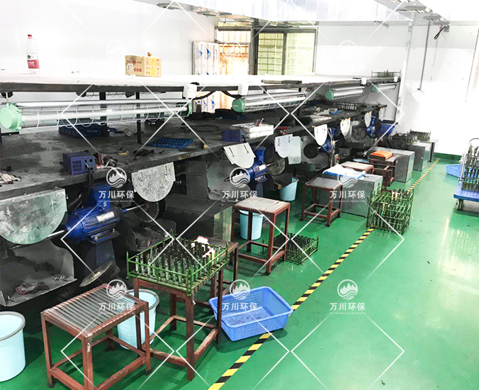 東莞某五金制品公司主營業(yè)務(wù)是生產(chǎn)不銹鋼、鐵、鋁等金屬制品以及零配件,該廠打磨拋光車間有20臺打磨拋光設(shè)備。每當(dāng)這些設(shè)備工作時,車間內(nèi)飄揚的粉塵不僅會讓人產(chǎn)生不適感,危害到人體健康,而且該車間的金屬粉塵是帶易燃性質(zhì)的,所以也存在很大的安全隱患。客戶迫切需要相關(guān)的專業(yè)環(huán)保公司為其處理粉塵問題,通過前期多家對比,最終選定我司。